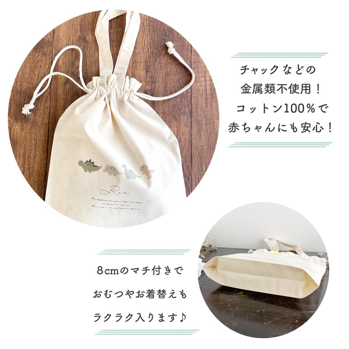選べるデザイン 【名入れおむつbag】 ギフト おむつポーチ おしゃれ 出産祝い わくわく プレゼント ベビー 巾着 オーダー オリジナル 綿 コットン 100% 赤ちゃん おでかけ 名入れ おむつ 出産準備品 マザーズバッグ